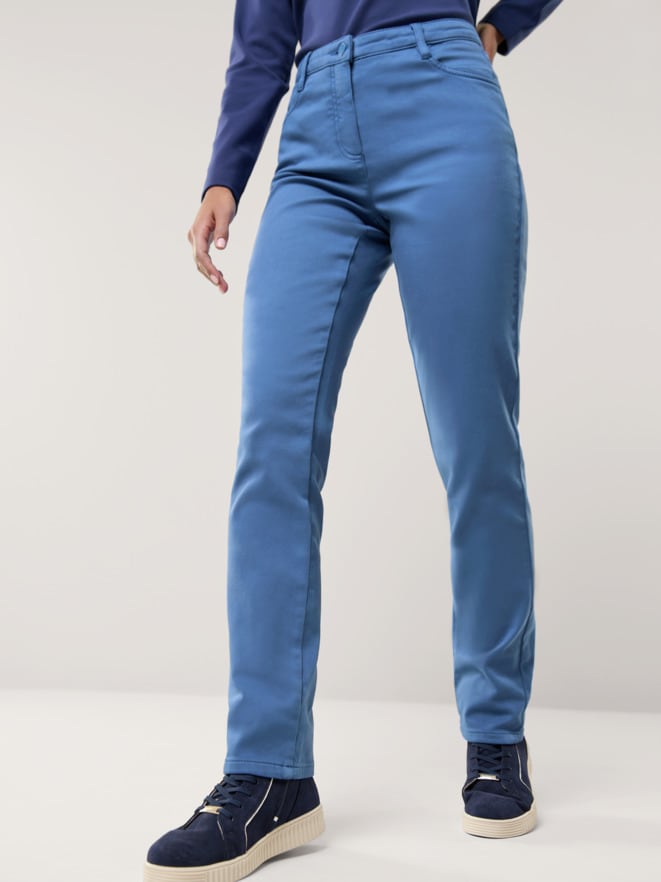 Einige unserer Damenhosen sind aus knitterfreien bzw. knitterarmen Stoffen gefertigt, was Ihnen insbesondere die Pflege der Hose erleichtert – so zum Beispiel unsere bügelfreien Hosen mit Extraglatt-Veredelung . Die innovative Feuchtvernetzung sorgt dafür, dass sich der Stoff nach dem Waschen automatisch wieder in Form zieht. Sie müssen die Hose also einfach nur zum Trocknen aufhängen – Falten verschwinden wie von Zauberhand, sodass Sie sich das Bügeln sparen.