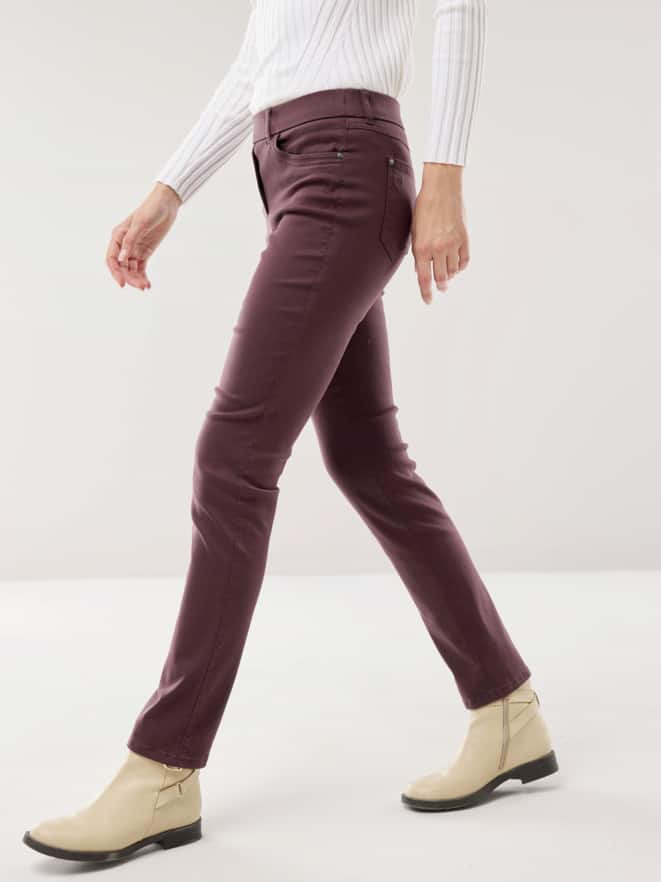 Bei den Passformen können Sie zwischen Regular Fit und Slim Fit wählen. Rote Hosen im Regular Fit haben eine normale, gerade Form und sitzen dabei weder zu eng noch zu locker, während sich der schmale Slim Fit für alle Damen empfiehlt, die ihre Hosen gerne körpernah tragen. Mehr zu unseren Größen und Passformen erfahren Sie in unserer Größenberatung für Damenhosen.