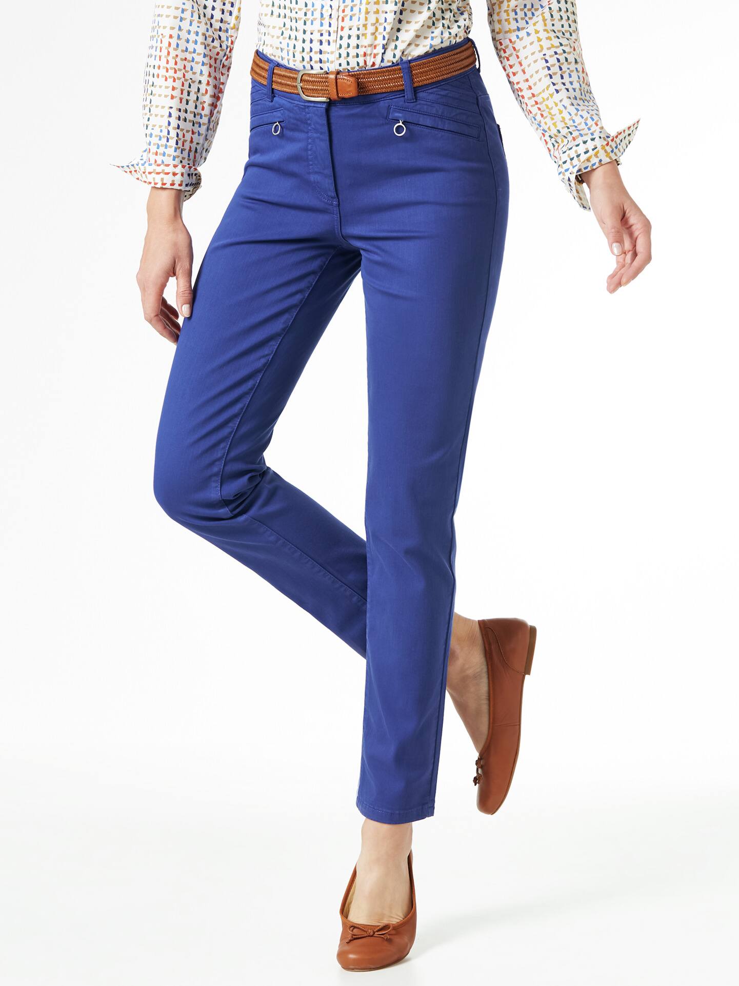 Einige unserer Damenhosen sind aus knitterfreien bzw. knitterarmen Stoffen gefertigt, was Ihnen insbesondere die Pflege der Hose erleichtert – so zum Beispiel unsere bügelfreien Hosen mit Extraglatt-Veredelung . Die innovative Feuchtvernetzung sorgt dafür, dass sich der Stoff nach dem Waschen automatisch wieder in Form zieht. Sie müssen die Hose also einfach nur zum Trocknen aufhängen – Falten verschwinden wie von Zauberhand, sodass Sie sich das Bügeln sparen.