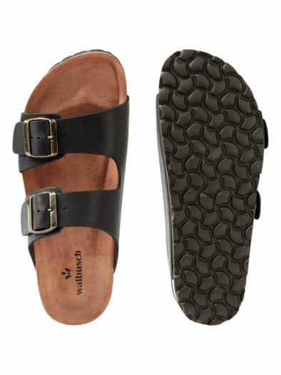 Mit 2 verstellbaren Riemen. Softfußbett. Rutschfeste Laufsohle.