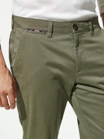 Beim Waldspaziergang ist sie das Pendant zum Winterpullover. Das Wärmegeheimnis der Chino steckt in ihrem weichen Thermofutter. Der atmungsaktive Baumwollflanell wurde leicht angeraut. So entstehen zwischen Oberstoff und Futter kleine Luftkammern, die wie eine Isolierschicht die Wärme speichern. Bücken Sie sich bei der Schneeballschlacht, schenken Ihnen der flexible Bund und das elastische Gewebe die nötige Bewegungsfreiheit. Das Bügeln der Hose haben wir mit Hilfe der Extraglatt-Veredelung auf Eis gelegt. Nass aufhängen, glatt streichen, fertig!