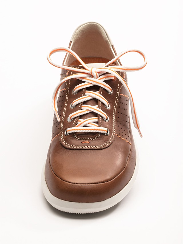 Diese Schnürung kann nur bei einer geraden Anzahl von Ösen geschnürt werden. Begonnen wird am ersten Ösen-Paar, wobei die Schnürsenkel-Enden von innen nach außen geführt werden. Kreuzen Sie anschließend beide Enden in der Mitte über der Zunge. Auf derselben Seite wird nun von innen nach außen durch die zweite Öse gefädelt. Nach diesem Schema wird weiter verfahren, ehe Sie an der obersten Öse einen einfachen Knoten machen und Ihr Schuh somit fest an Ihrem Fuß sitzt.