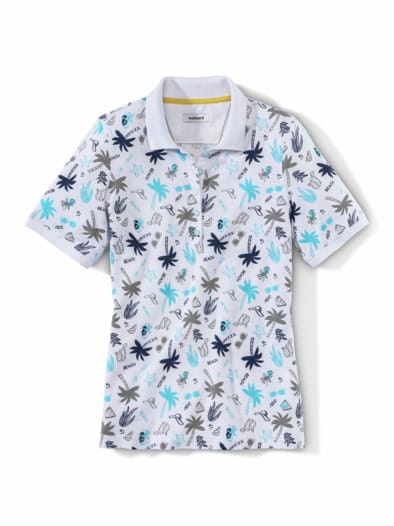 Ausdrucksstark - im wahrsten Sinne des Wortes. Denn die attraktiven Drucke auf diesen Jersey-Polos sind etwas ganz Besonderes. Ob Streifen, Blätter-, Strand- oder Früchtemuster - auf der leichten Baumwolljersey-Ware kommen sie bestens zur Geltung. Eingerahmt von kontrastfarbenen Kragen und Ärmelabschlüssen sowie neckischen Knöpfen bringen sie Frische in Ihr Outfit. Dank einem Schuss Elasthan wird auch der Tragekomfort großgeschrieben.
