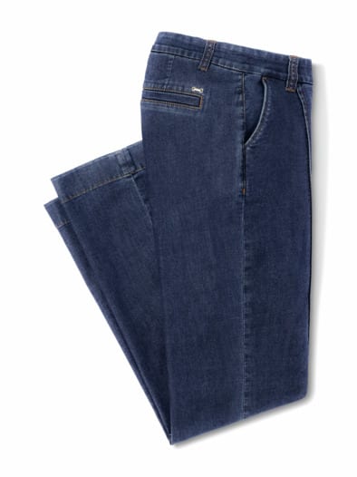 Mit Comfort-Bund (ca. 6 cm dehnbar). Gürtelschlaufen. 2 französische Taschen vorne, 2 Zier-Gesäßtaschen. Mit Biese. Ohne Gürtel. Saumweite ca. 51 cm. Innenbeinlänge ca. 76 cm in Gr. 42, ca. 71 cm in K-Gr. 21, ca. 81 cm in L-Gr. 84.