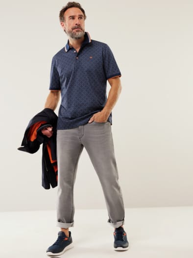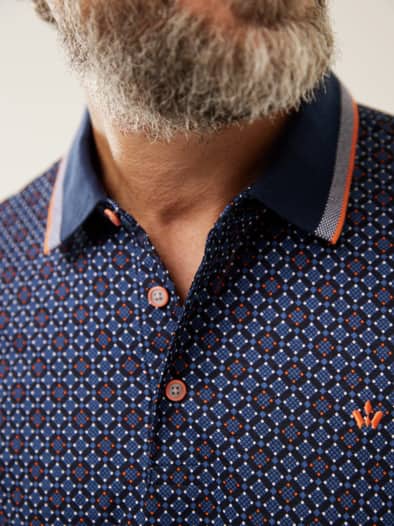 Raffiniert: das schöne Polo mit dem modernen Mosaikdessin. So feine Muster entstehen nur mit dem Digitaldruck, bei dem unbegrenzte Farben eingesetzt werden können. Damit das Muster noch brillanter zur Geltung kommt, wurde es auf mercerisierte Baumwolle gedruckt. Das gibt dem Stoff einen ganz feinen Glanz und lässt die Farben leuchten. Erfreulicher Nebeneffekt des Mercerisierungs-Verfahrens: Das Polo wird formstabiler und strapazierfähiger. Für einen frischen Effekt sorgt der luftdurchlässige Piqué. Auch die Details an Kragen und Ärmelbündchen können sich sehen lassen. Dieses etwas schickere Polo passt super zur Chino und begleitet Sie gerne im Sommer.
